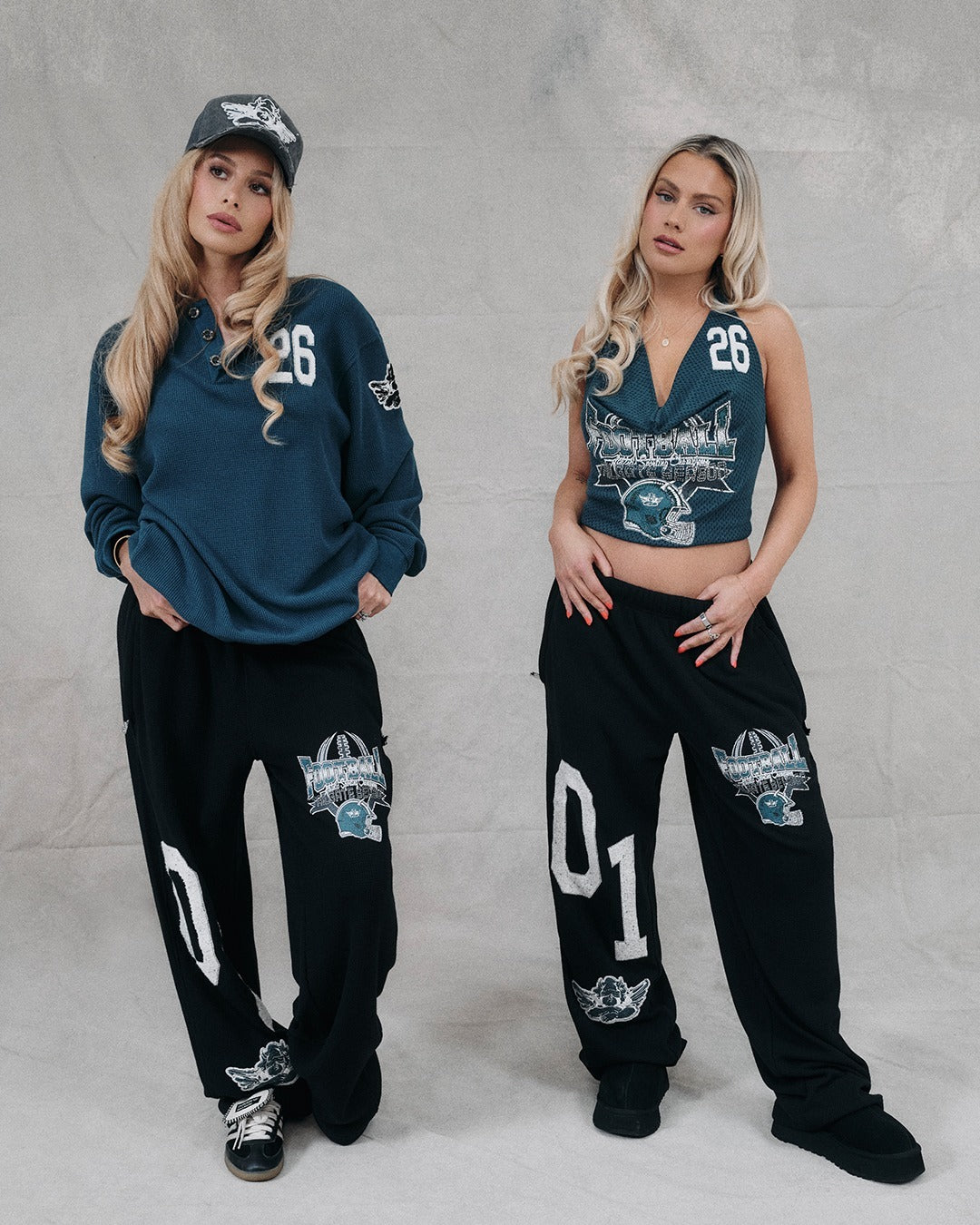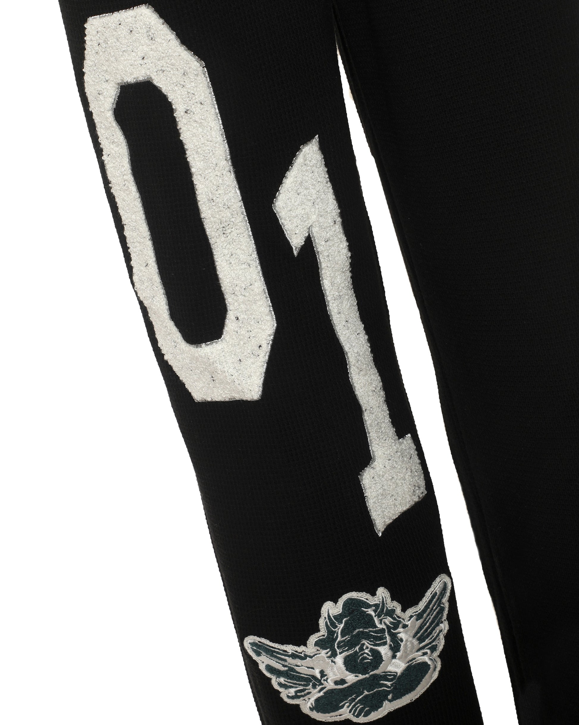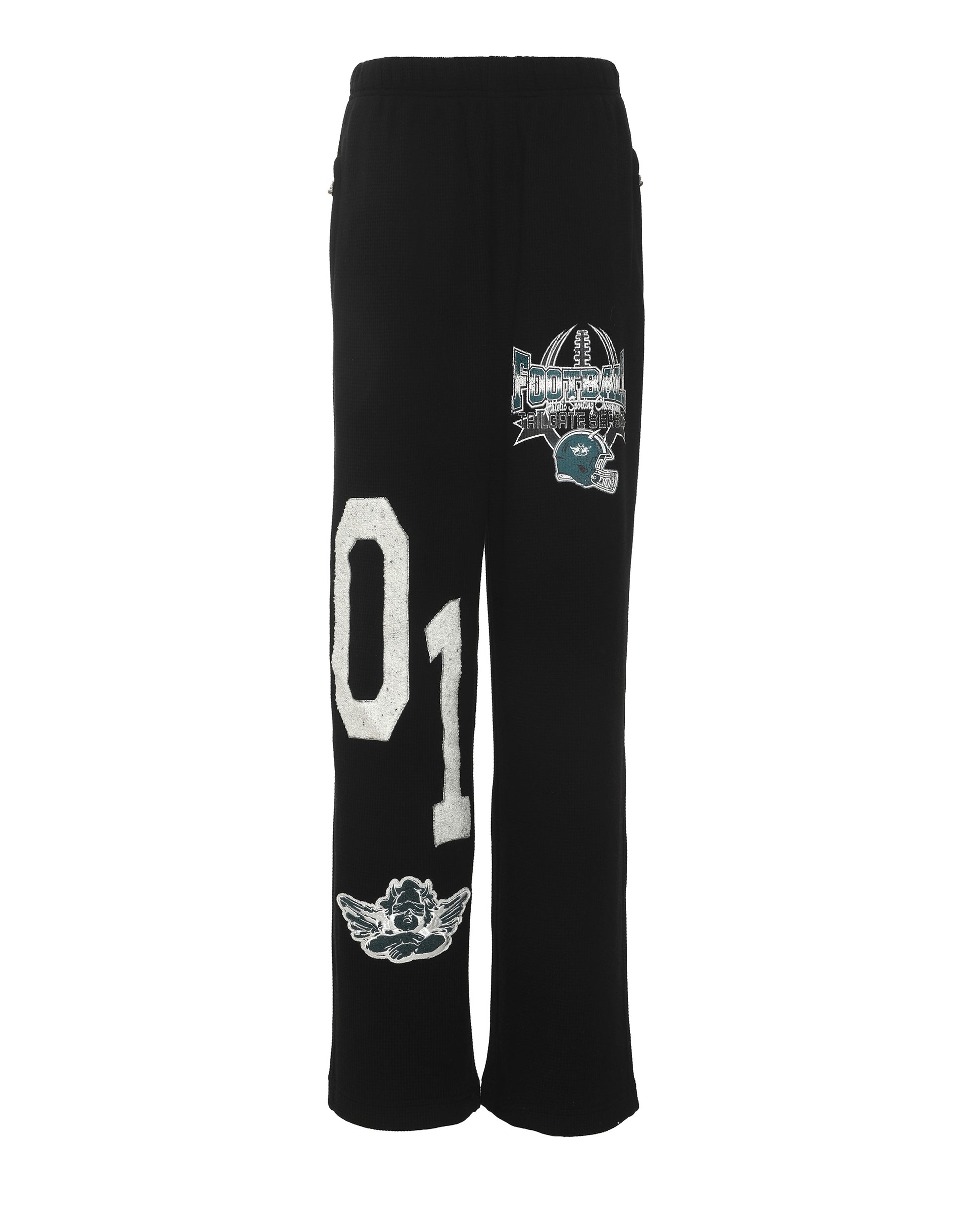 Game-day vibes meet cozy comfort with these Boys Lie sweatpants. Featuring bold 01 varsity-style graphics and playful football-inspired patches, they bring the perfect mix of sporty edge and laid-back charm.