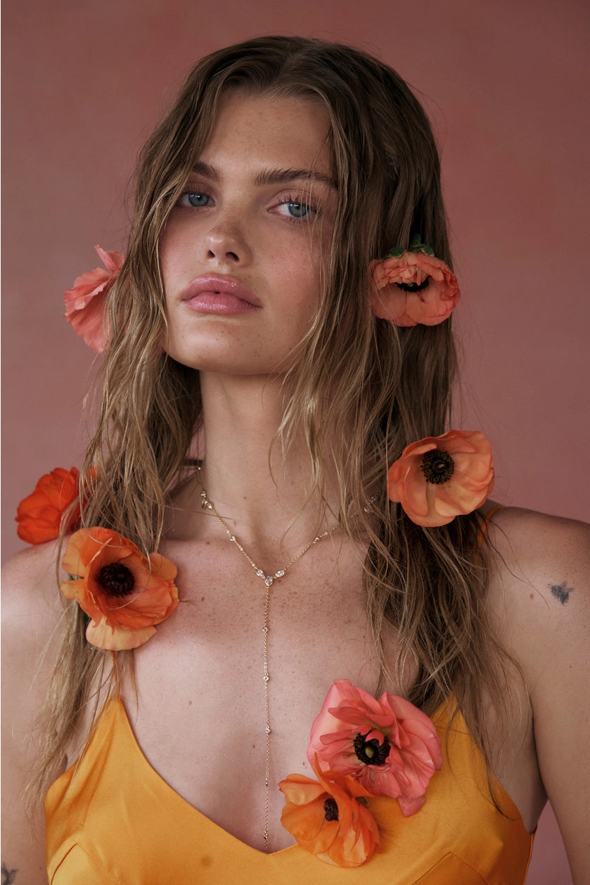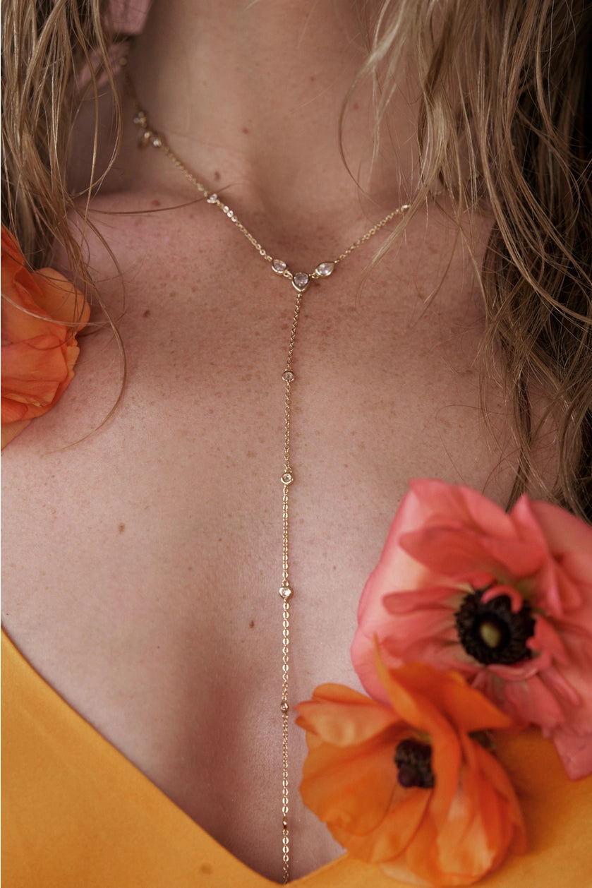 Lariat necklace in 14kt gold plated brass