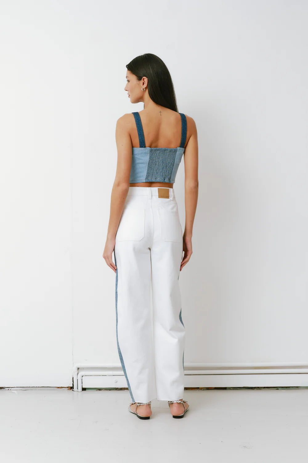 A structured cropped bralette top that can be worn on its own or with its matching bay jean