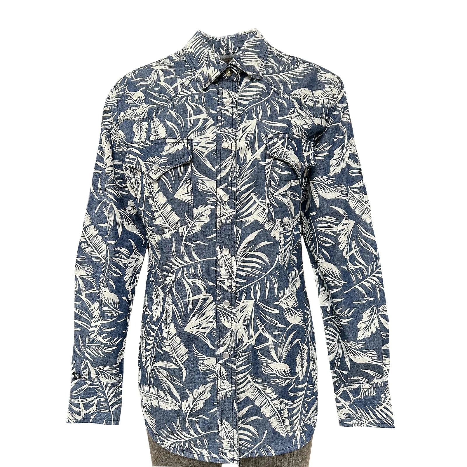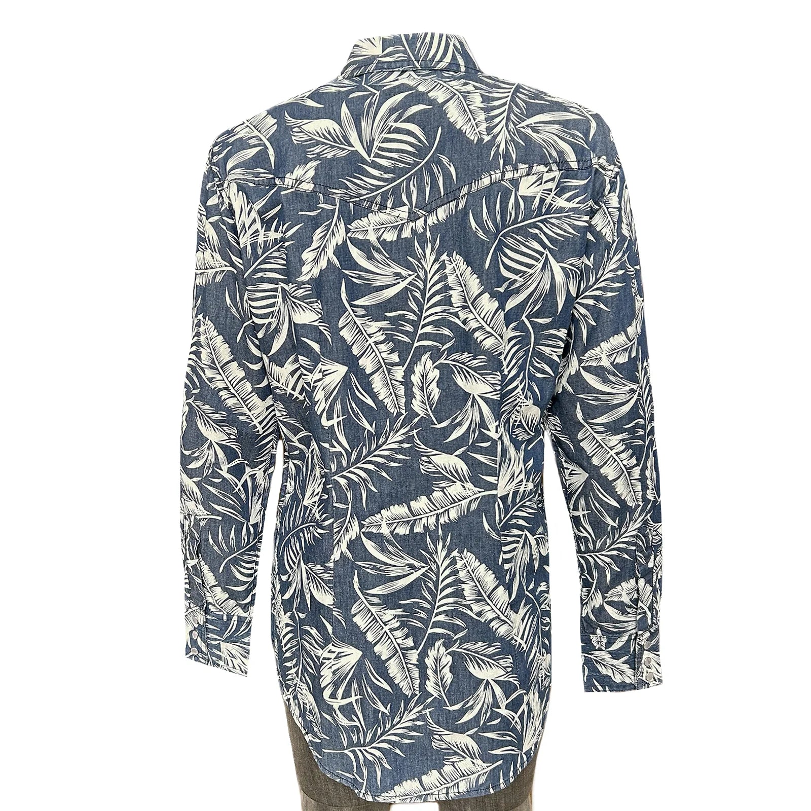 We run denims with floral prints from time to time and they always sell well. It's been a long time, so this is a fresh new look. Rockmount is all about the special design twists which add to the artistry of the shirt. Our decades of designing prints mean classics stay in style. The premium combed cotton Indigo Denim is soft, light weight and comfortable, a deeply dyed print. It features our single point pockets, rugged double needle construction, relax fit, import.