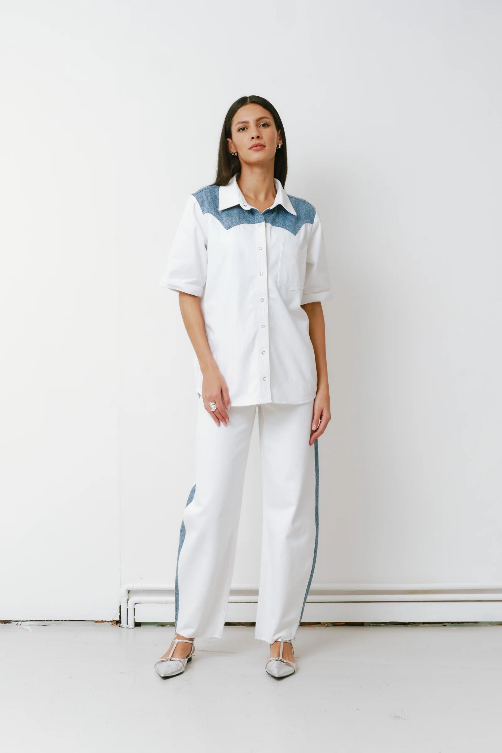 This western-inspired short-sleeve cuban shirt has a slightly oversized fit for a laid-back yet elevated feel, perfect for layering or wearing solo.