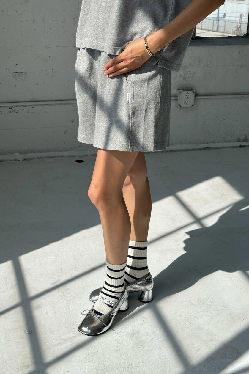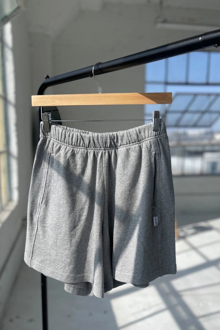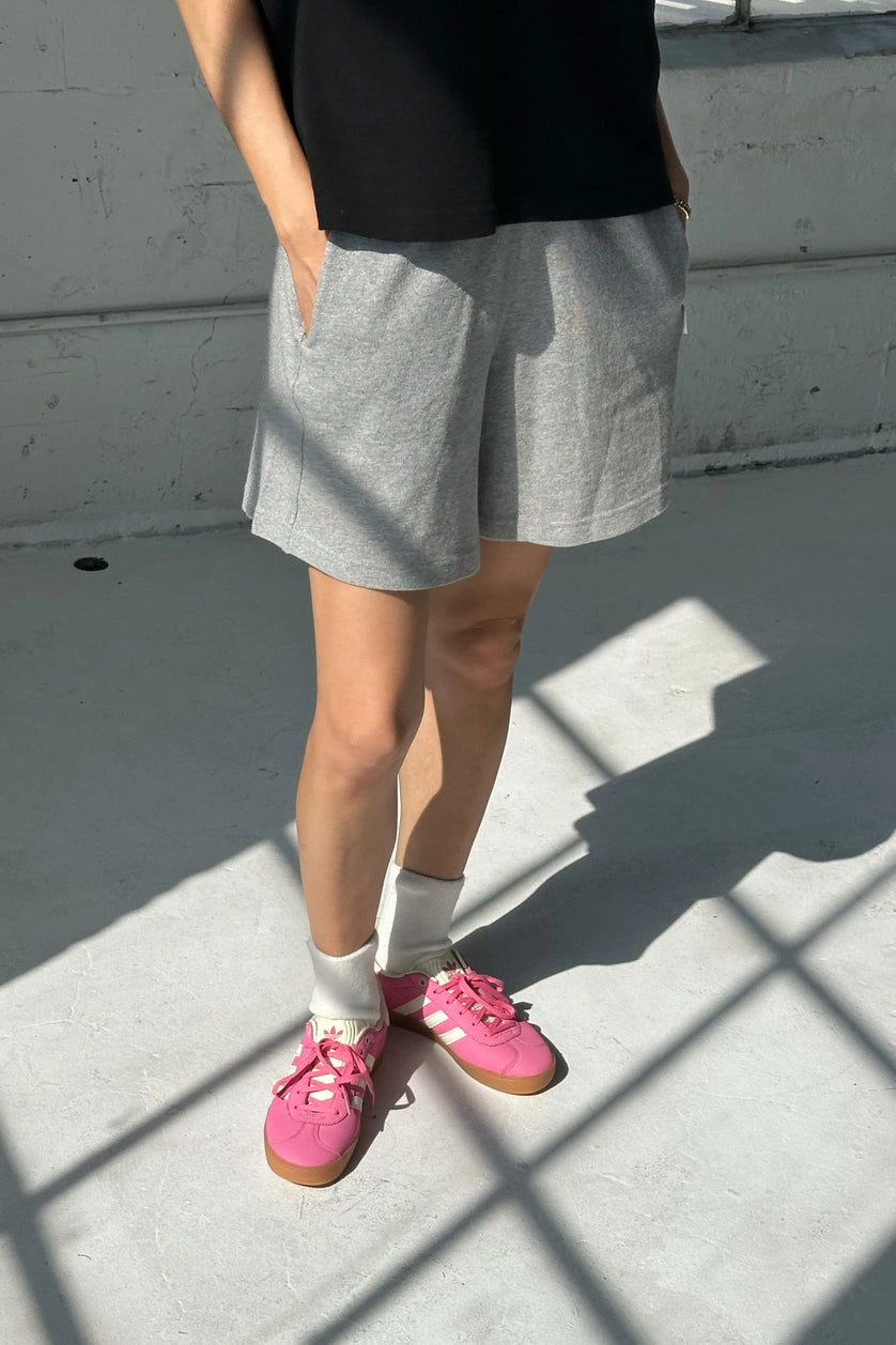 Why are most knit shorts super short, thin and tight? We needed heavy weight knit high waisted, A-line, not showing too much skin modern retro basketball shorts! Flattering design with a slightly shorter out seam and perfect mid thigh length. This beauty is made in 100% cotton heavy weight low gauge knit. Super raw textured yet soft and airy! She is garment dyed and pre-washed for a rich textured look with an ultra soft hand.