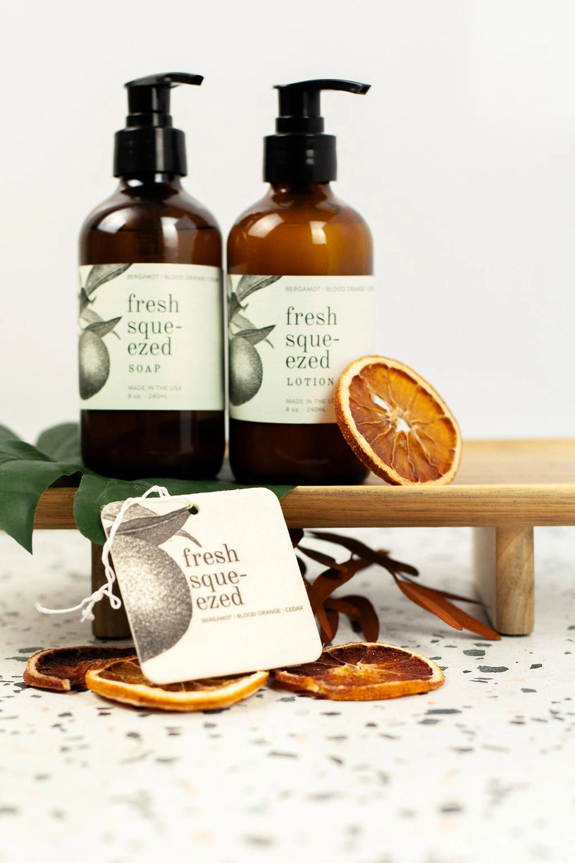 Bright, zesty, and full of sunshine — Fresh Squeezed captures the energy of a citrus grove in bloom. Bold bergamot and tangy blood orange blend with smooth cedar for a refreshing fragrance that turns your daily drive into a burst of optimism. The perfect balance of clean and uplifting.