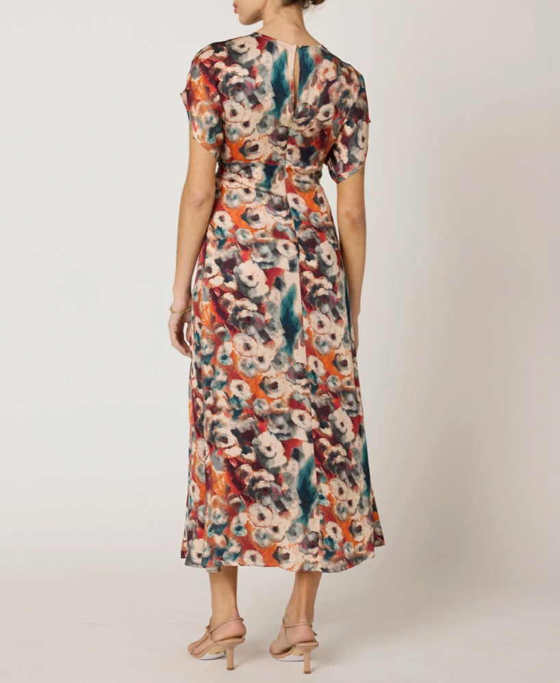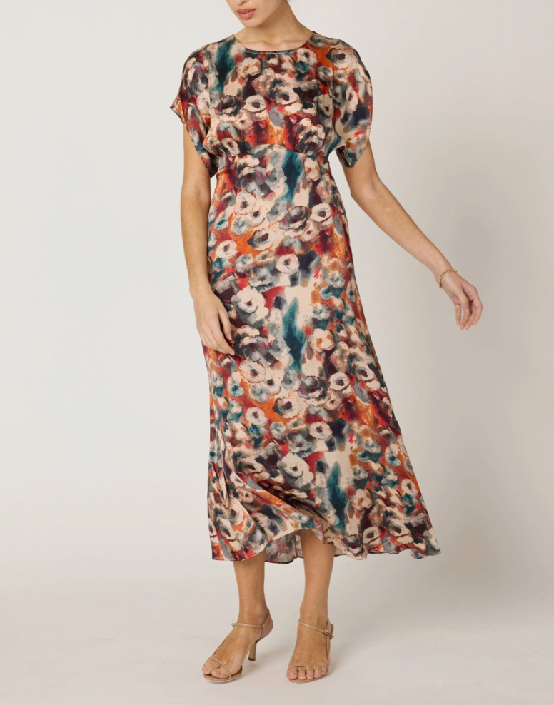 Ethically handmade in India from 100% viscose, the Gia Ankle Dress in the bold Tamayo print blends timeless elegance with a modern silhouette. This short-sleeve, ankle-length dress features a subtle back neck slit with a button closure, offering a sophisticated and effortless look for any occasion.