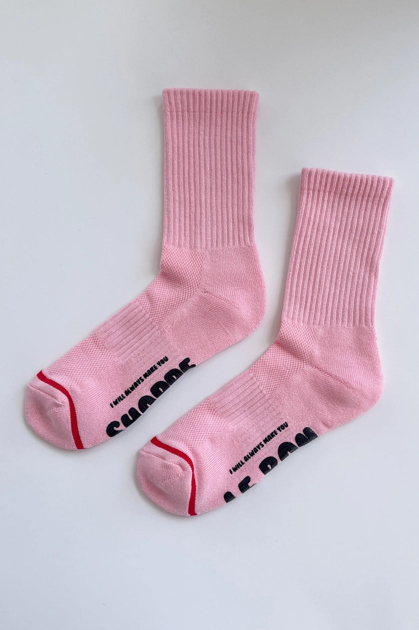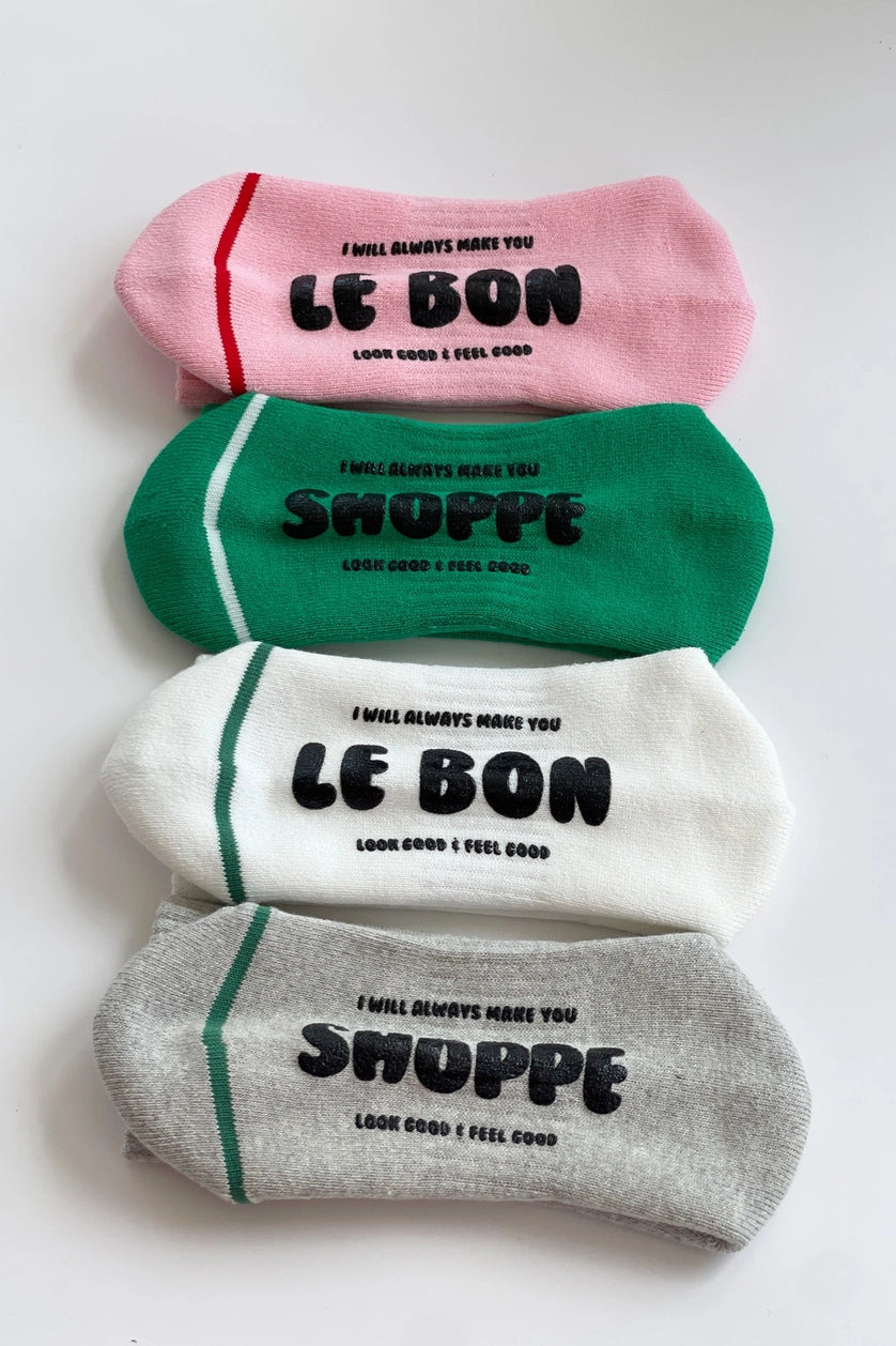Why We Made This? The introvert with a bubbly personality. Say hi to the Hugger Socks. Built on the same classic crew-length base as the Boyfriend Socks, with a clean, solid leg and a playful surprise underneath. A silicone motif on the sole adds a light grip, perfect for hugging flats, clogs, and slides.