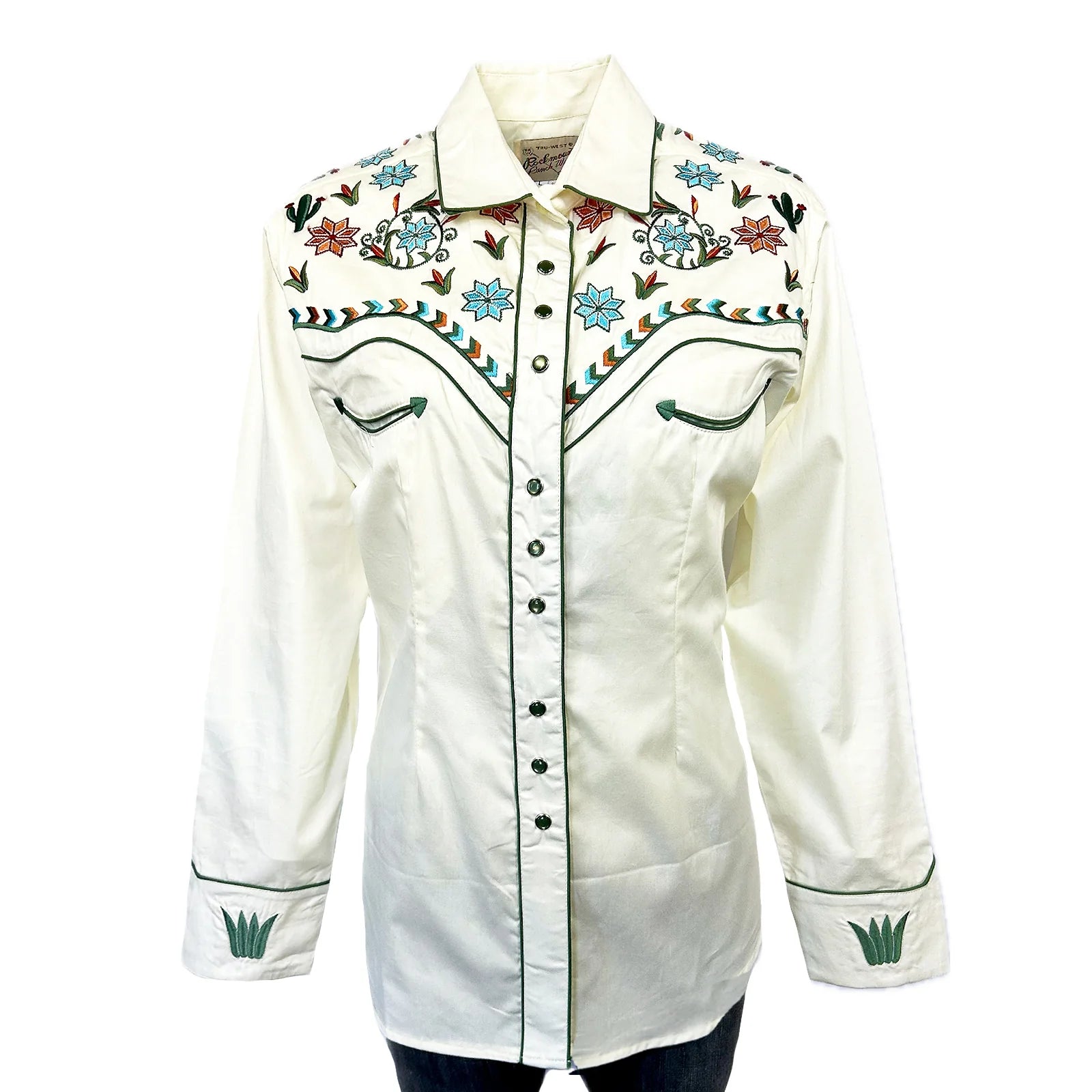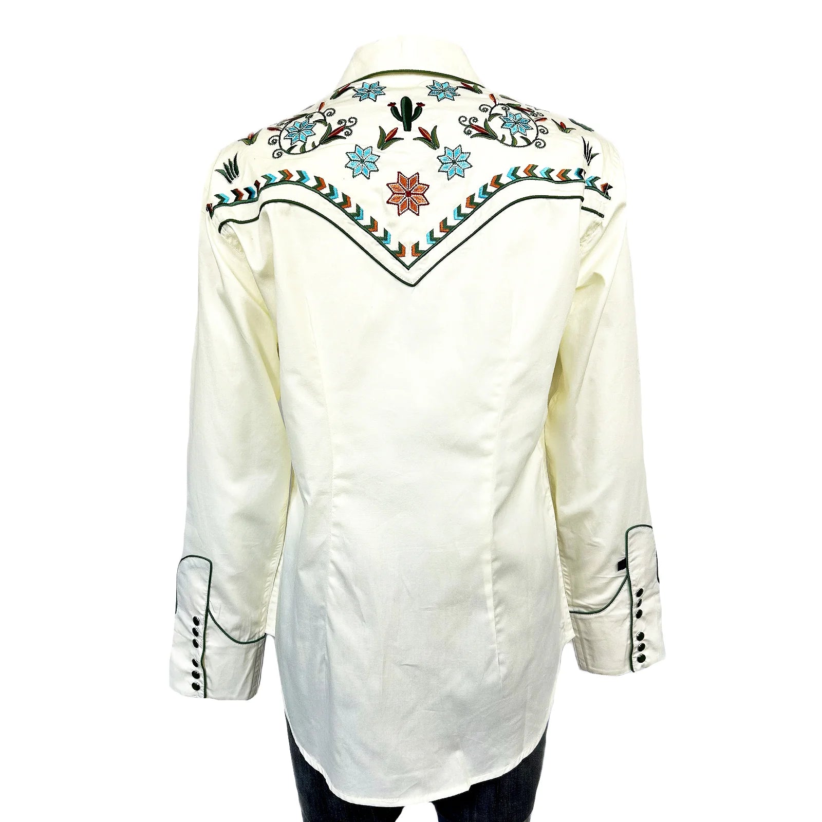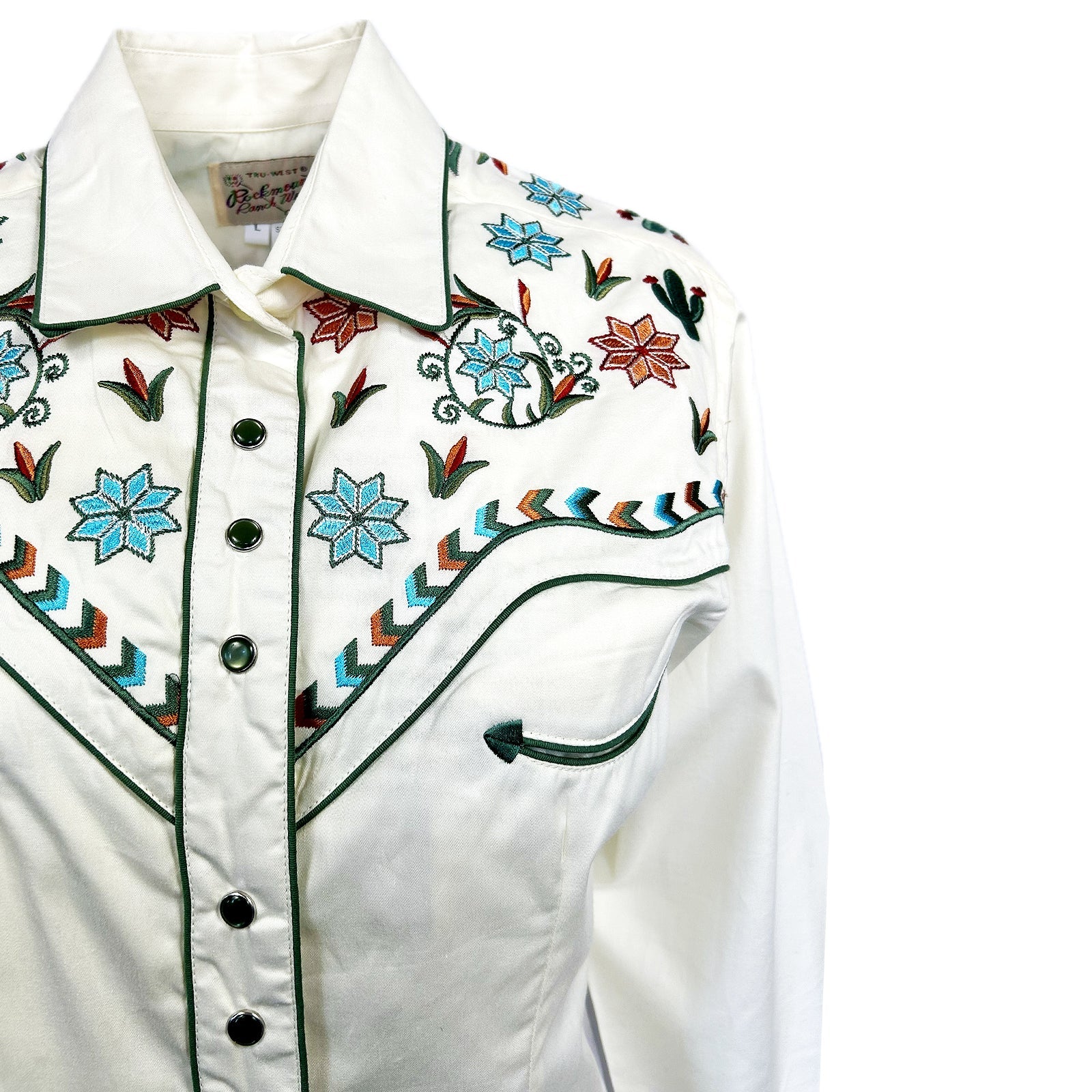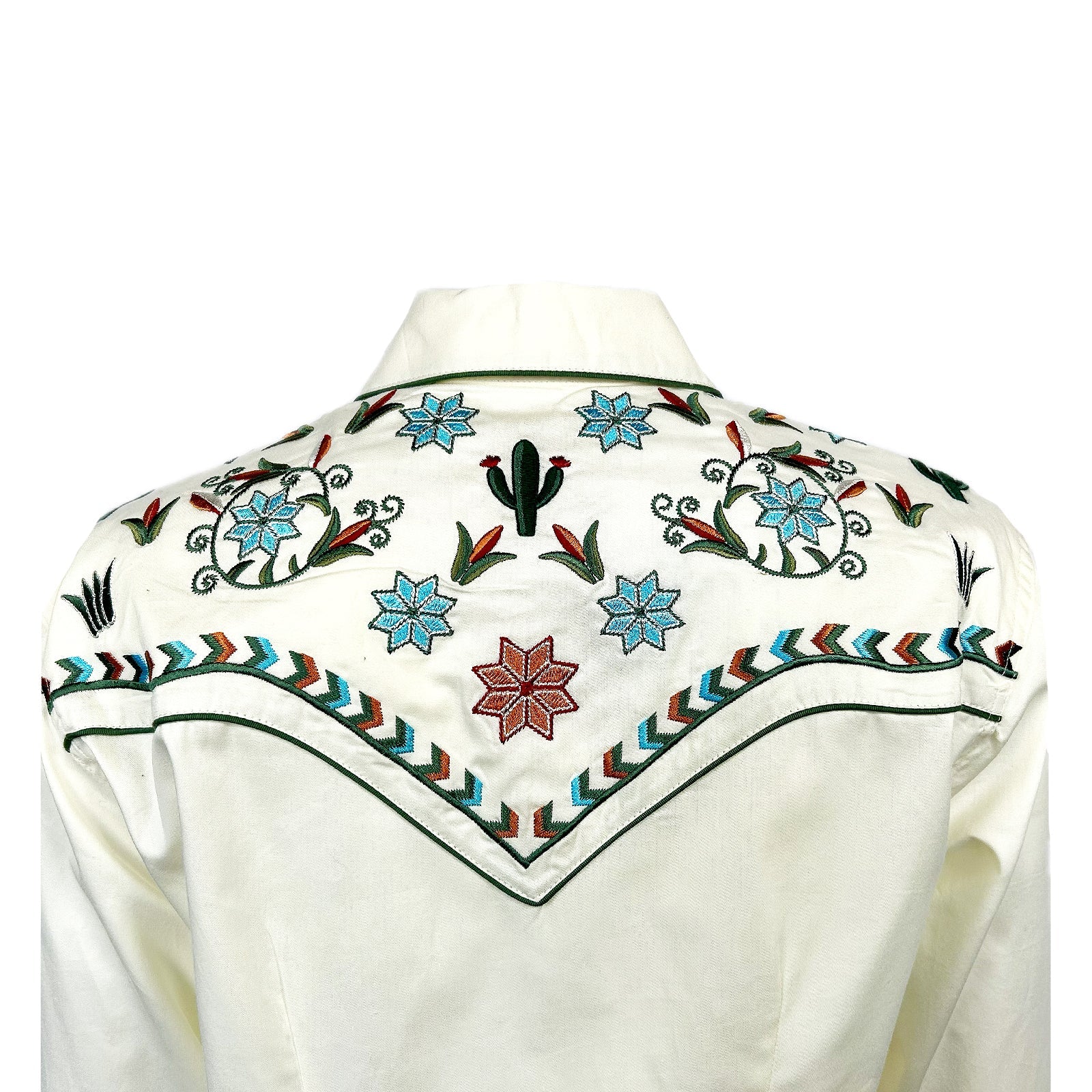FINAL SALE - Ivory Agave Cactus Floral Embroidery Western Shirt