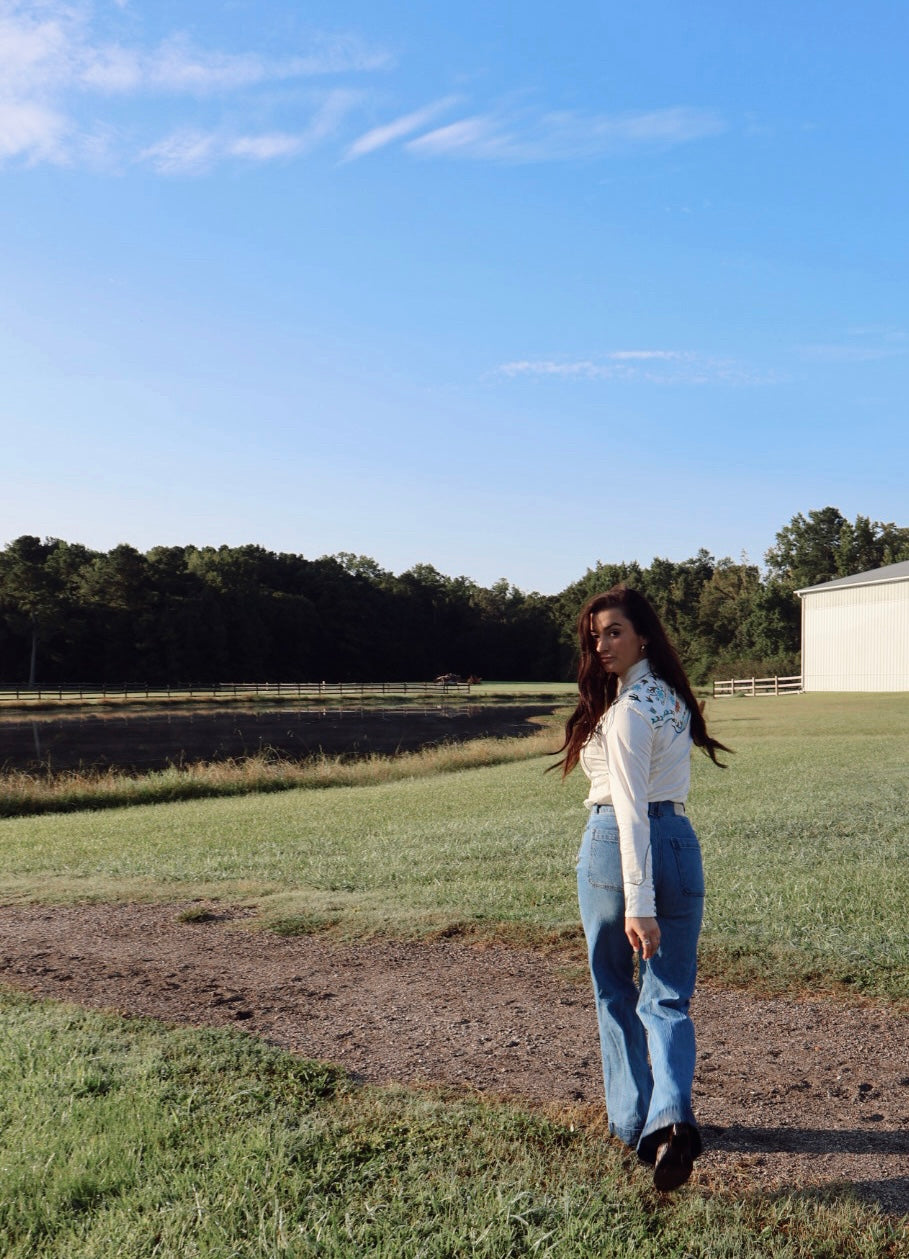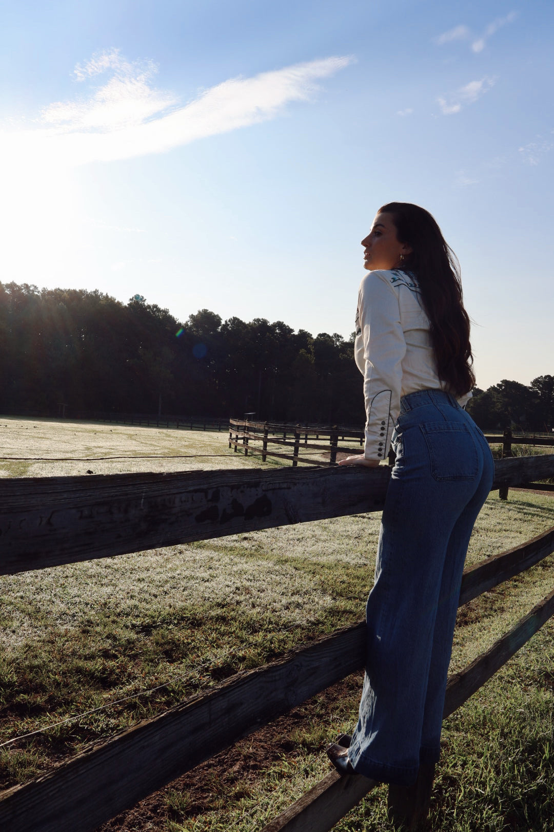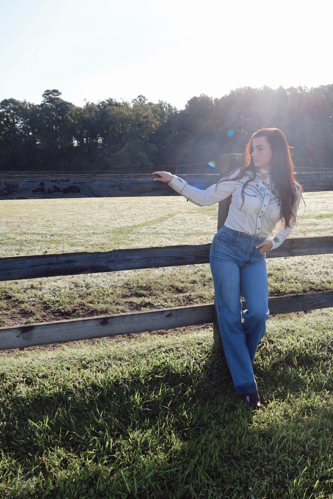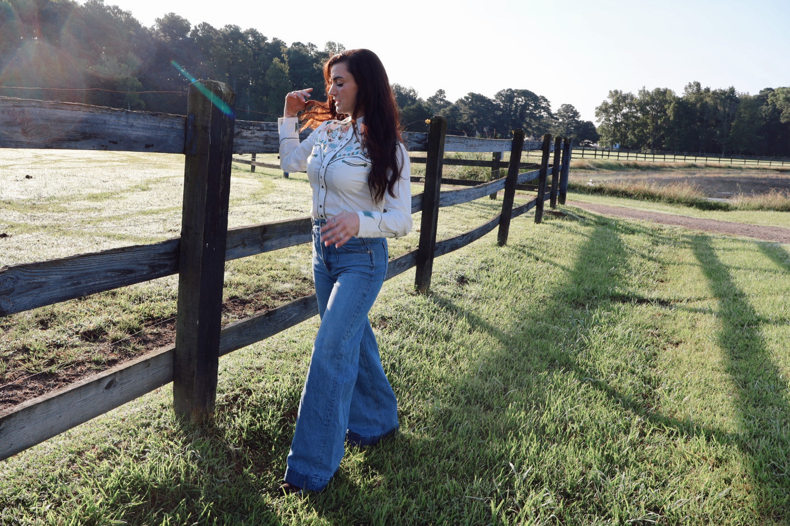 FINAL SALE - Ivory Agave Cactus Floral Embroidery Western Shirt