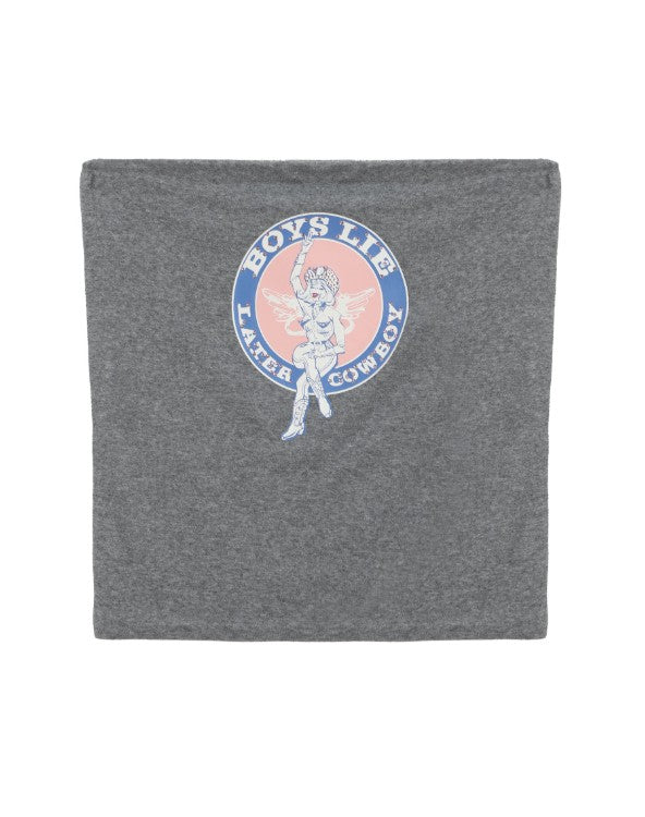 Made from a soft, stretchy cotton fabric, this grey bandeau-style top hugs just right and features the bold Later Cowboy graphic front and center. It's flirty, fearless, and ready for anything—from rodeo nights to rooftop hangs.
