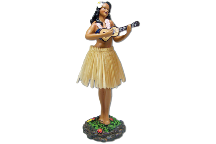 Each doll is meticulously sculpted by an artist and hand-painted with attention to detail, ensuring that every piece is a unique work of art. Standing 7 inches tall, the Hula Girl features a natural skirt and holds a tiny ukulele, ready to strum a tune as she sways gently to the motion of your vehicle.