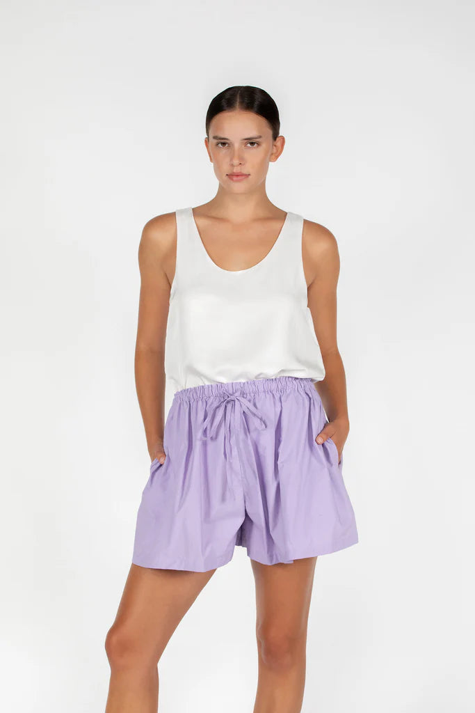 The Olly short is crafted from 100% cotton and has a subtle bubble effect that will set your soft tailoring separates apart. We suggest pairing Olly with the relaxed tank top for an easy, classic look.