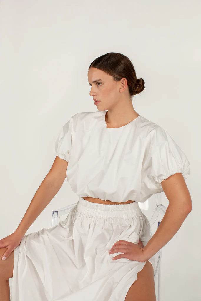 Say hello to the Opihi Top. This high neckline crop top with bubble sleeves is as unique as it is sophisticated. Wear yours with the matching Delia skirt, high waisted trousers or vintage denim. This unique top has been a staple in our collection since her debut in 2022.