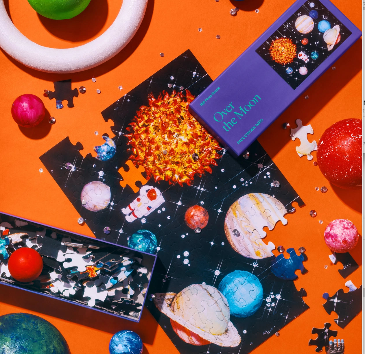 PRODUCT INFORMATION 100 piece puzzle Completed puzzle is 10.8 x 16.15 inches Box is 10 x 4 x 2 inches Thick stock and high-quality art paper Ages 6+ Board is 100% recycled paper