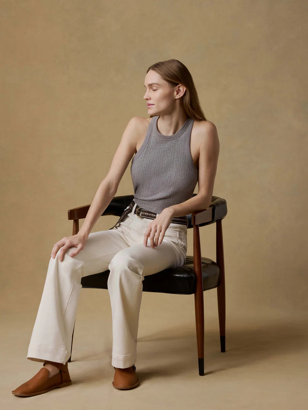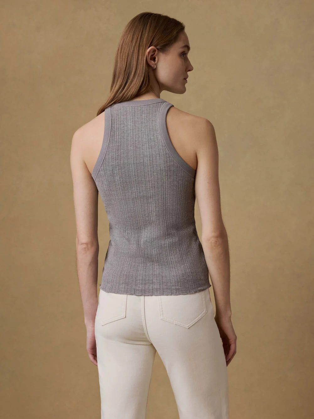 Effortless and feminine, this vintage-inspired pointelle tank is a wardrobe staple designed to layer and live in. The breathable knit offers subtle texture, while delicate picot trim softens the neckline and sleeves for a refined finish. Perfect for pairing with relaxed denim or slipping beneath a cozy cardigan.