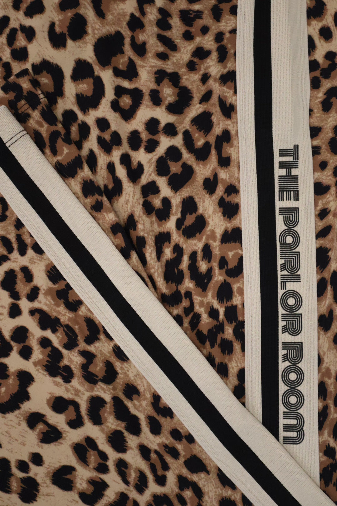 These straight leg pants are made from animal printed butter soft fabric with a 4-way stretch, featuring side stripe details for a sporty-chic look — perfect for both active and casual wear.