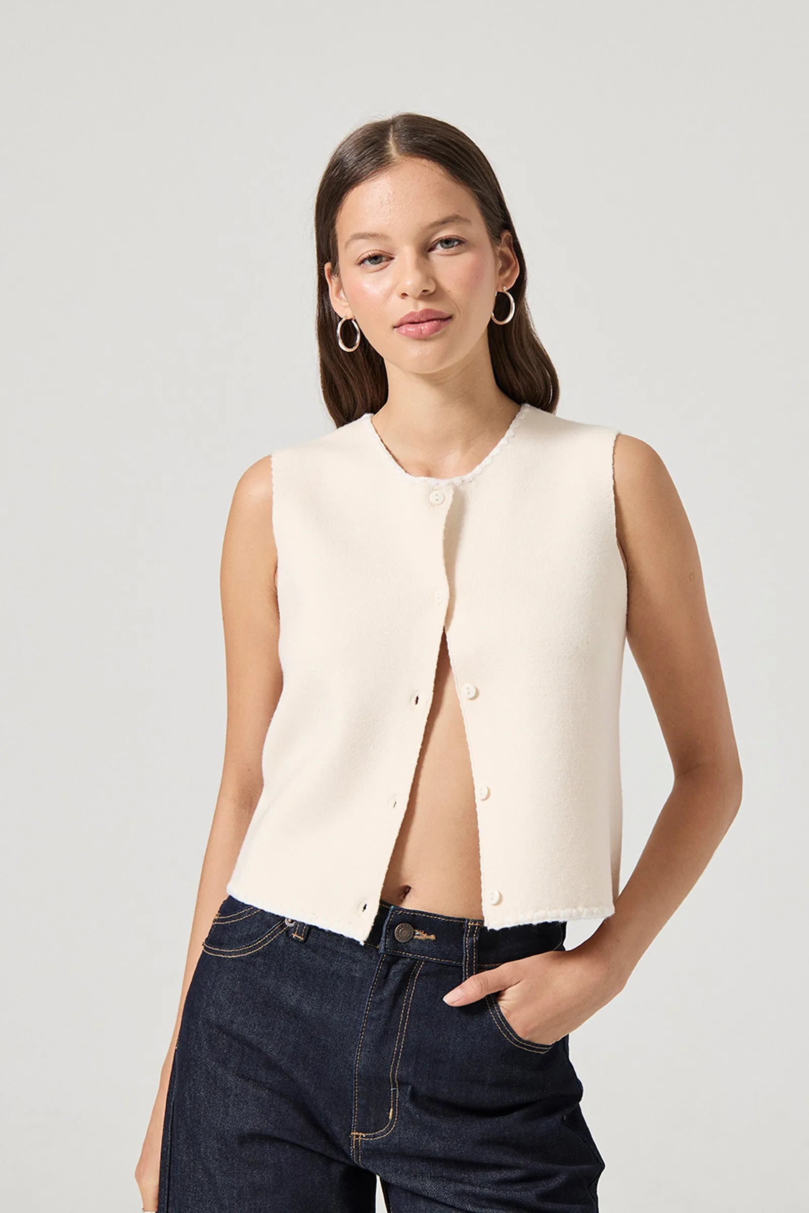 - Crafted from a soft white knit fabric, the Pia Vest is perfect for all-season layering