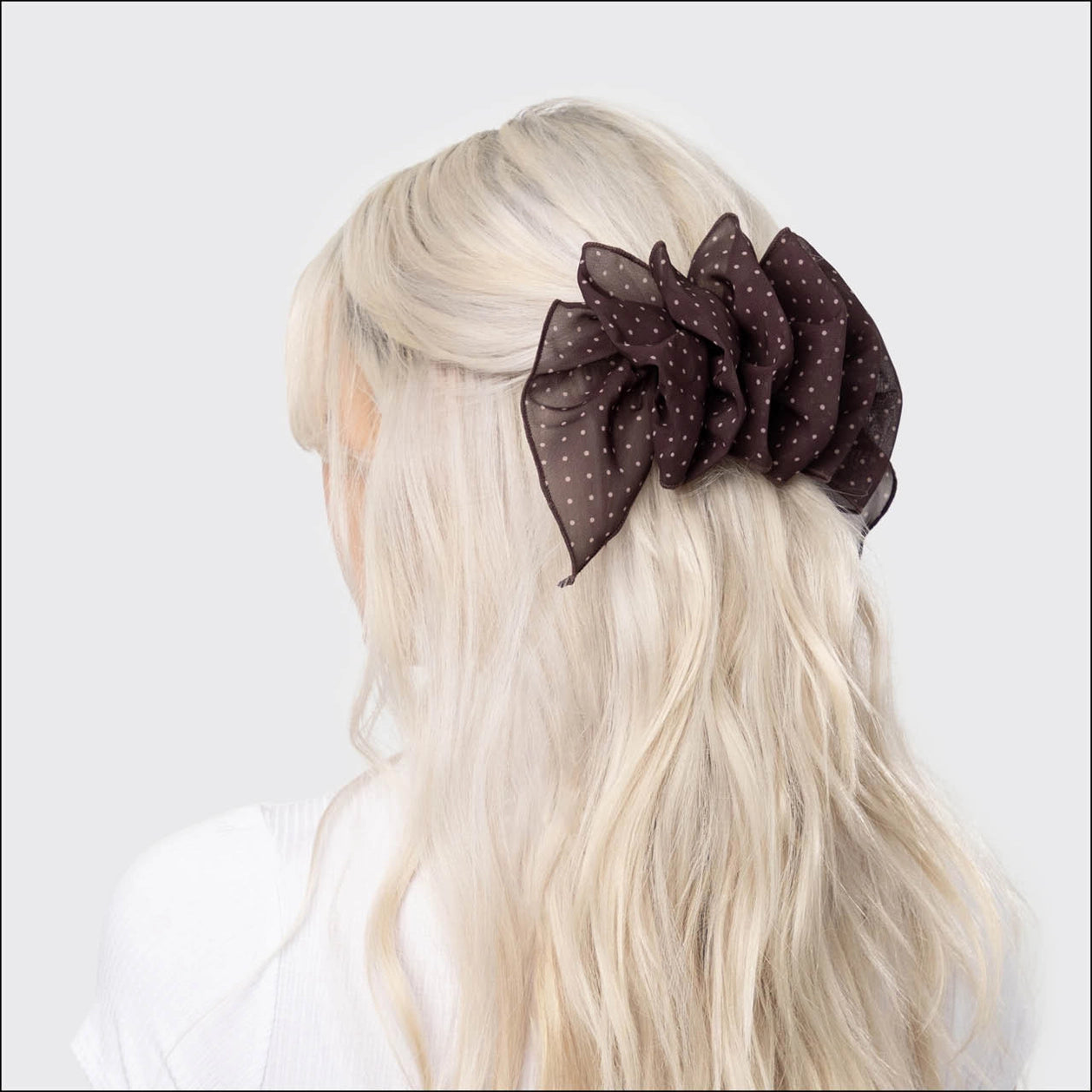 Add a little something extra to your everyday style while you clip your hair back. This sophisticated chiffon barrette features subtle-yet-playful polka dots, offering an easy solution for dressing up your full or half updo. Crafted with recycled materials, the eco-friendly design lets you feel good about looking good.