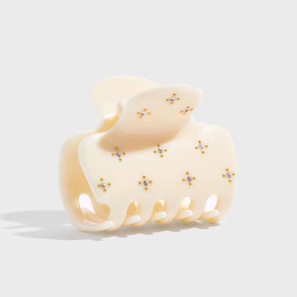 Easily twist & clip your hair into a half-up or full updo -Medium arch shape comfortably and securely holds most hair lengths and textures -Our very own cloud design with embellished rhinestones & gold studs elevates your hairstyle with added shine
