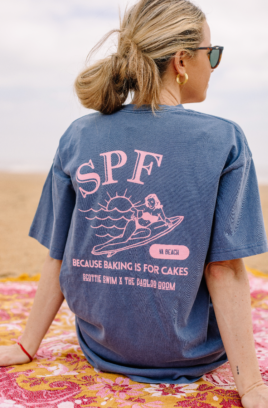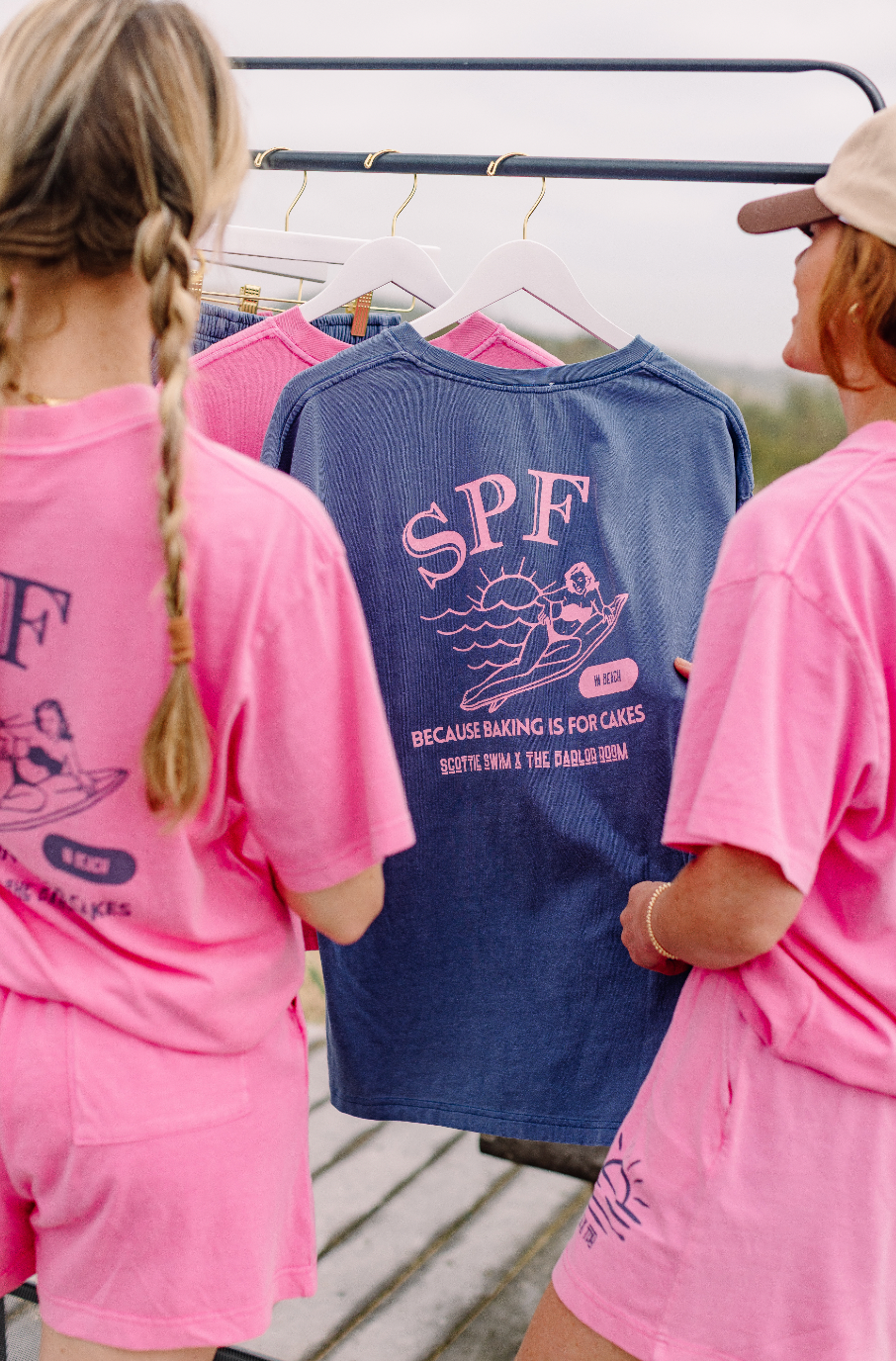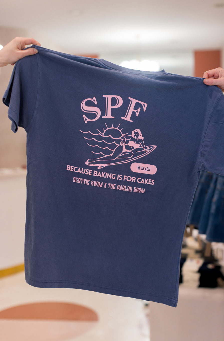 Featuring our exclusive SPF design with bold color on the left front chest and back. This tee is screen printed locally in Virginia Beach.