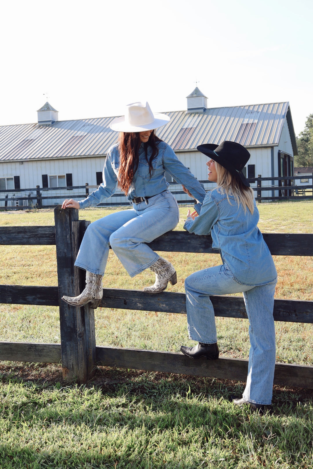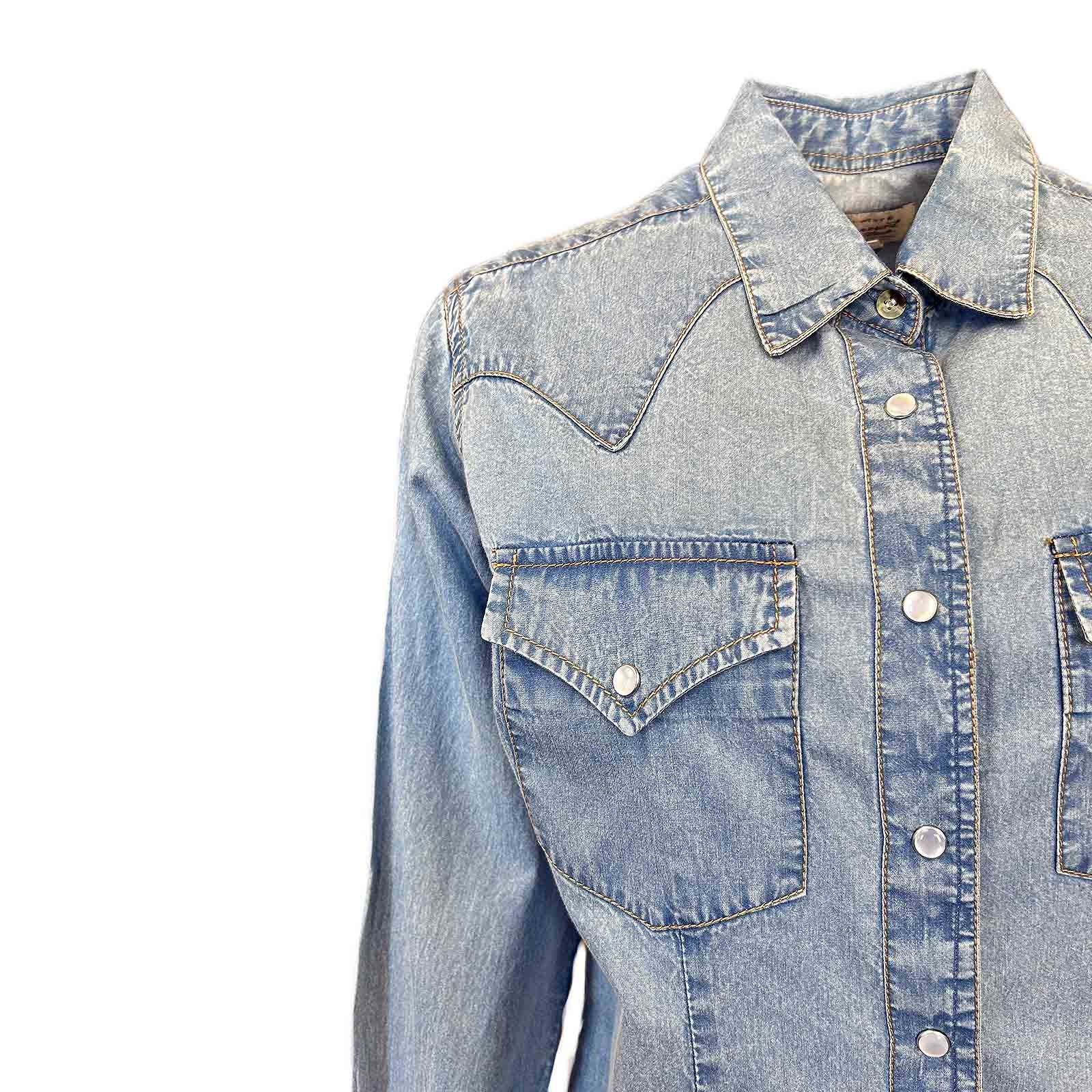 These denim shirts are soft 100% cotton, beautifully tailored with darts in front and back, with single point pockets and double needle stitching. Denim is stonewashed with contrasting stitches. Imported.