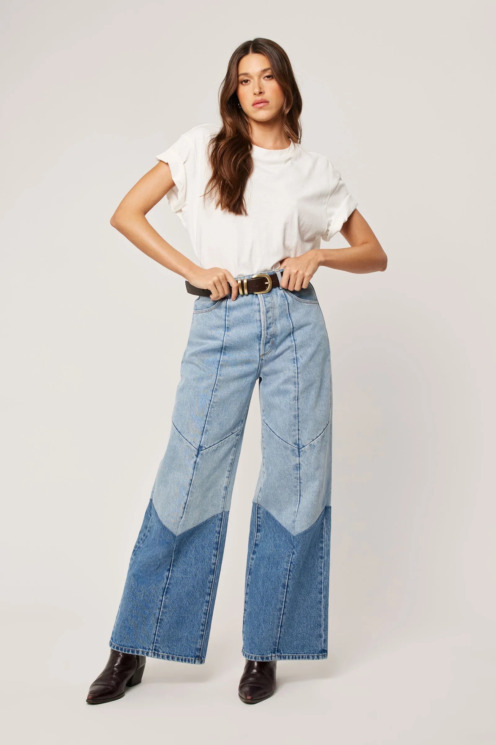 - Chevron is a light blue wash finished with a constrating dark denim chevron-pattern panel