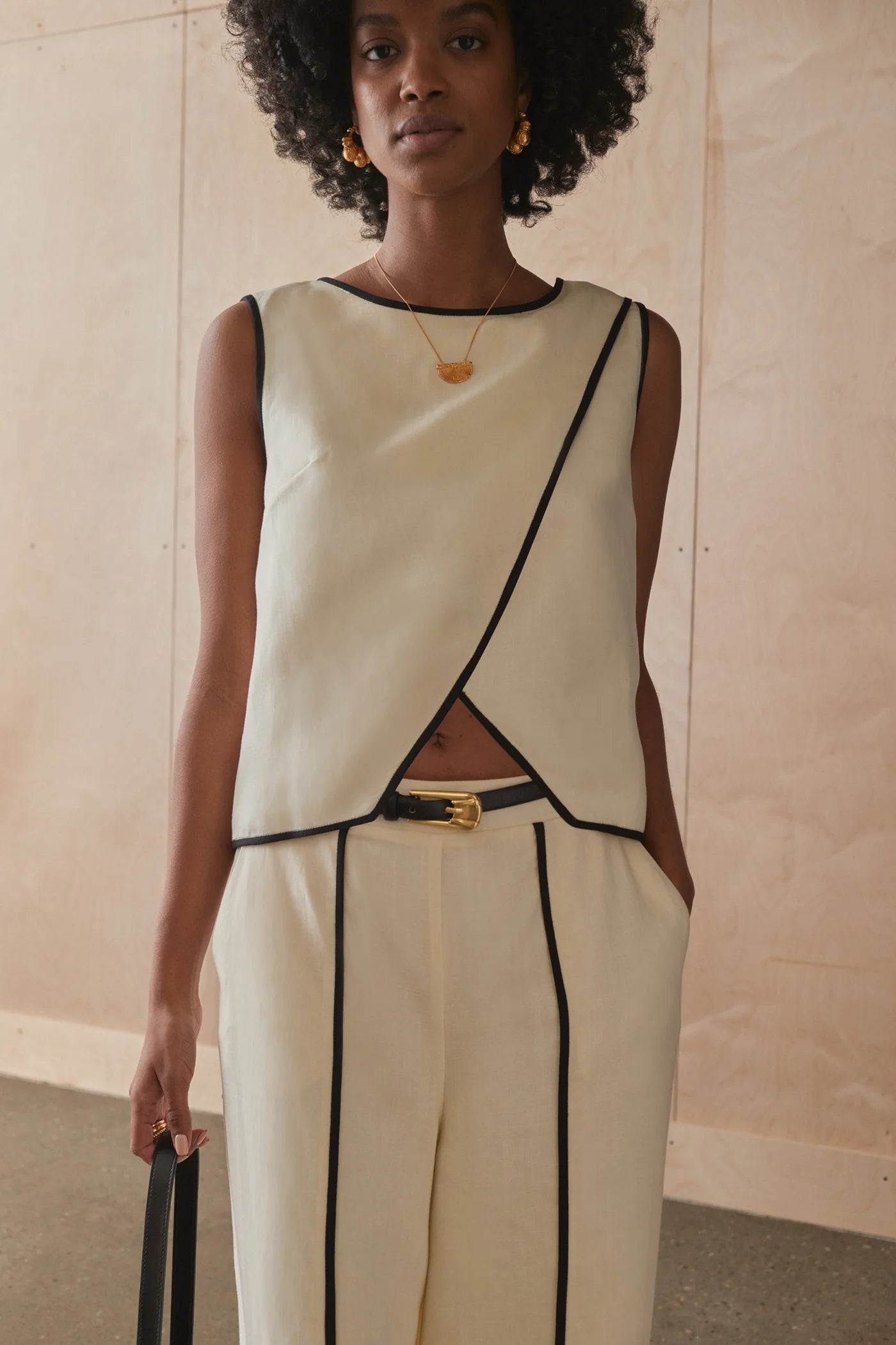 Introducing the Artemis Top - a refined take on the classic tank. This chic style with a high neckline showcases a unique overlapping front design to show off a statement belt. Pair with the Loren Skirt for an effortlessly classy matching set.