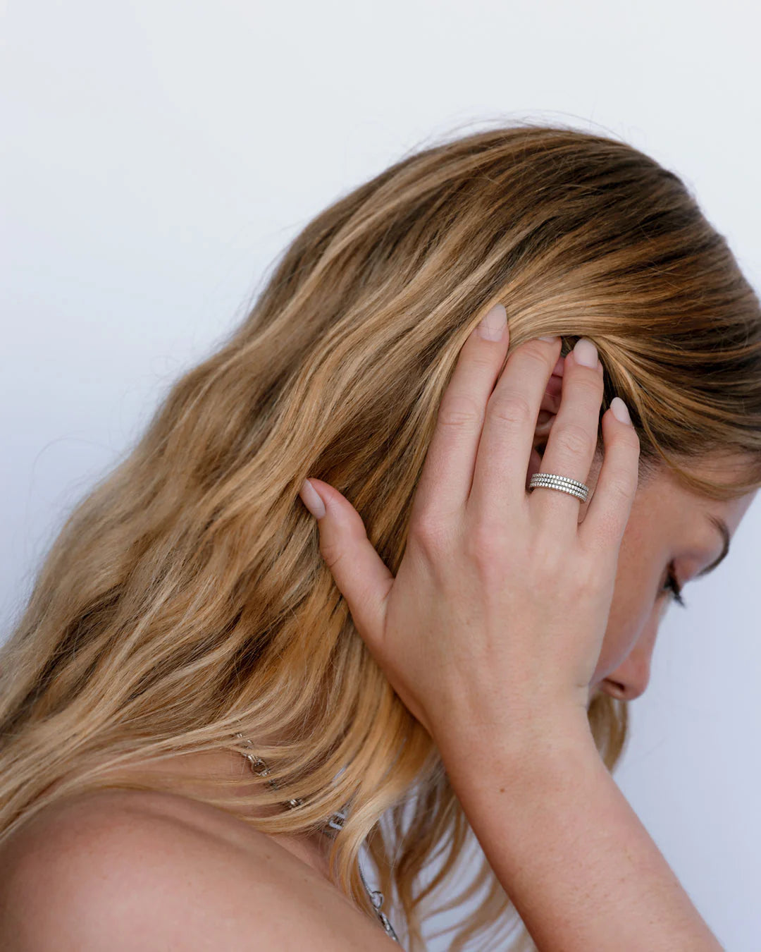 - Set of three thin, pave covered, stackable rings
