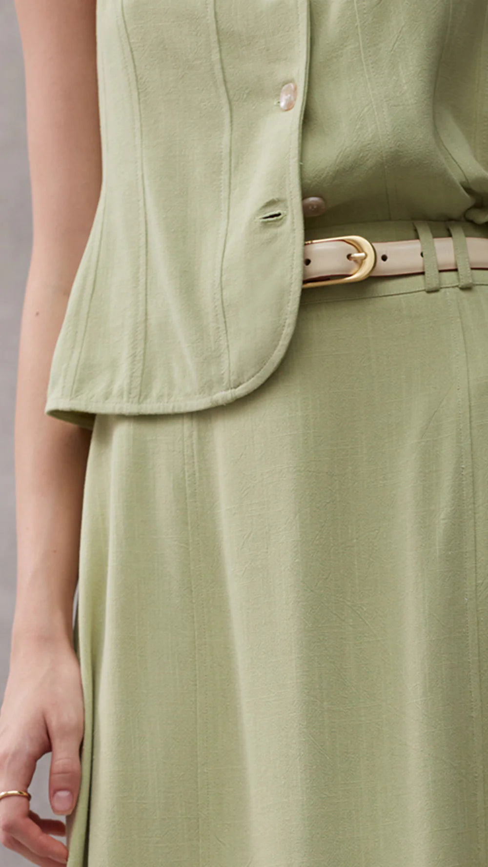 The Mira belt will add a touch of sophistication to every outfit it is styled with. The supple vegetable leather is accentuated with an elongated, sculptural buckle that was custom designed in- house. Cinch in the waist of your favourite knit or thread it through the loops of your jeans for an instant lift.