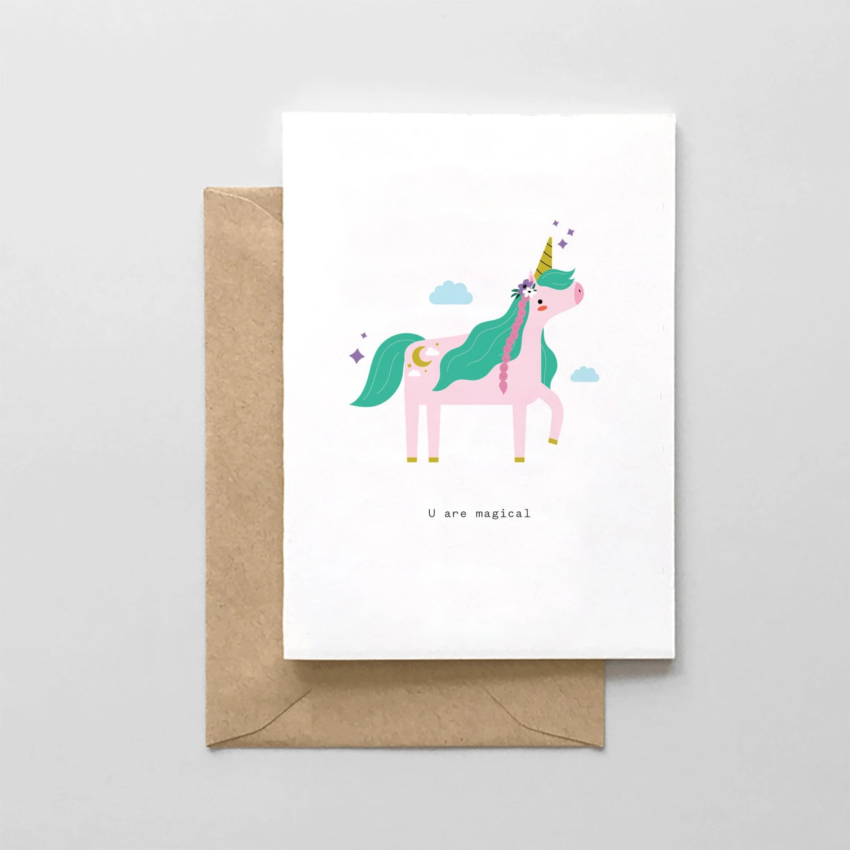 Size: A6. (4.5 x 6.25 inch) Blank on the inside. Kraft brown envelope included. All packaged in a clear plastic sleeve. Made in the USA.