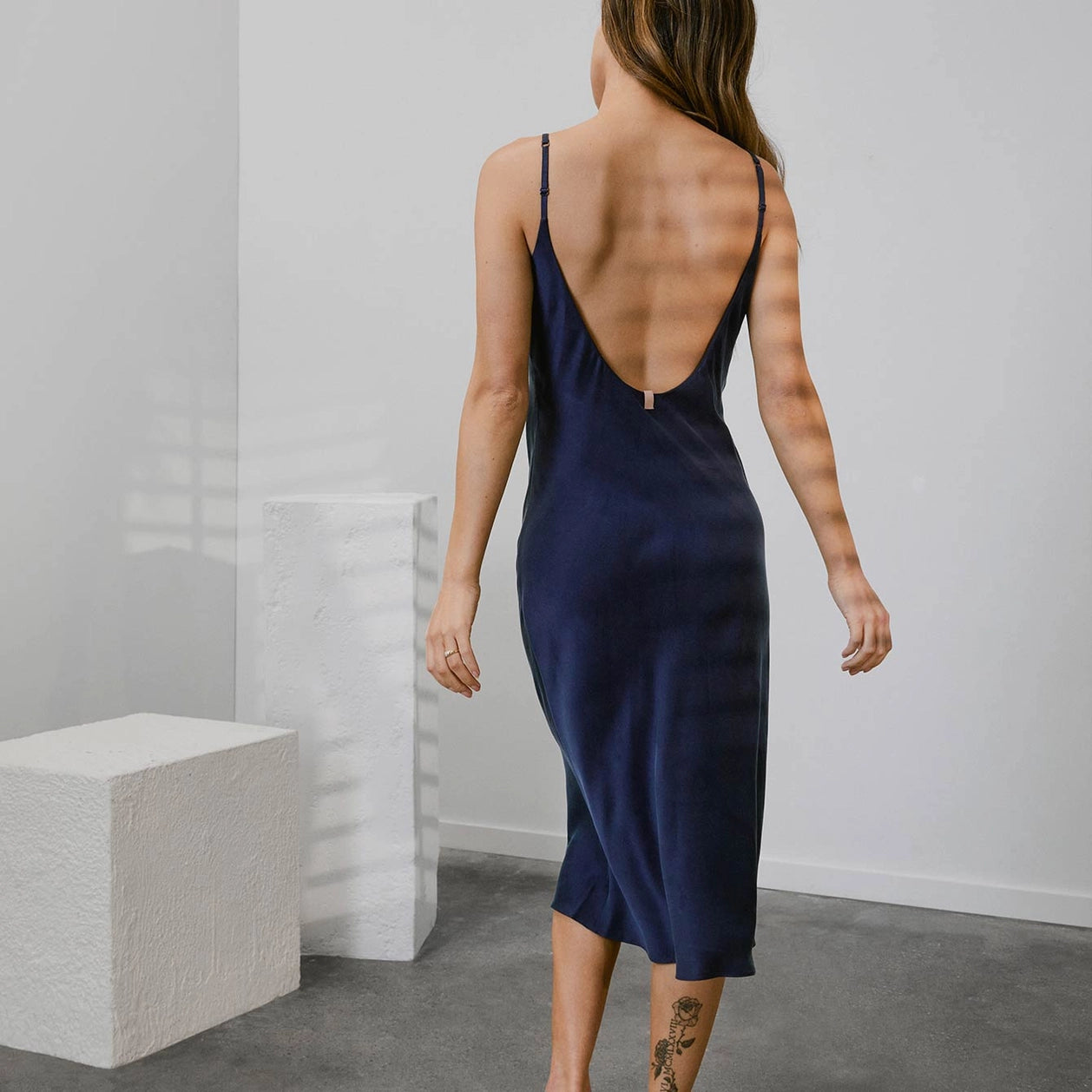 The new Washable Silk Bias Slip Dress brings the dreams (and the drama). From the smartly designed adjustable, non-slip silicone straps that support your every sleep position (tossers and turners, delight), to the low back style that keeps bedtime breathable and eye-catching, the midi length lets you sashay in heavenly comfort. Made with Mulberry Washable Silk (read: 100% machine washable) for effortless layering, take it with you into every season.