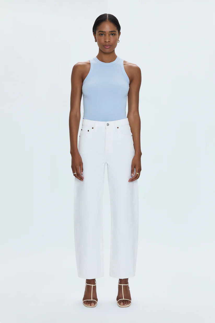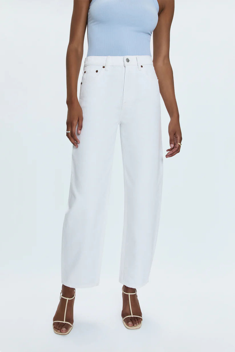 Classic Style, Modern Fit. These high-rise, full-length jeans in a crisp white wash offer a timeless silhouette with a modern twist. Crafted from rigid non-stretch denim, they’re designed to hold their shape and provide an expert fit.